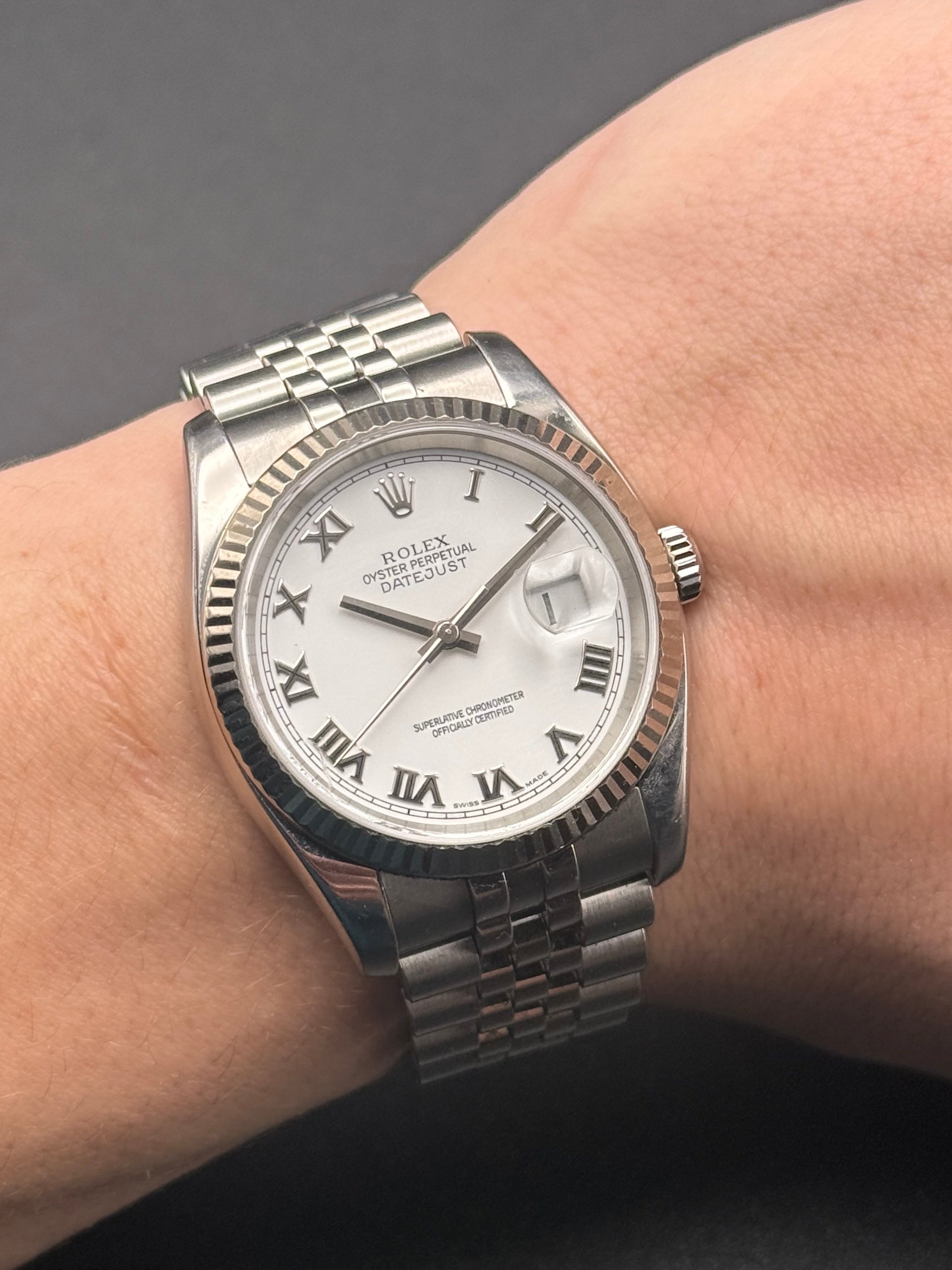 Rolex DateJust 116234 White Roman Super Jubilee D Serial Watch Only