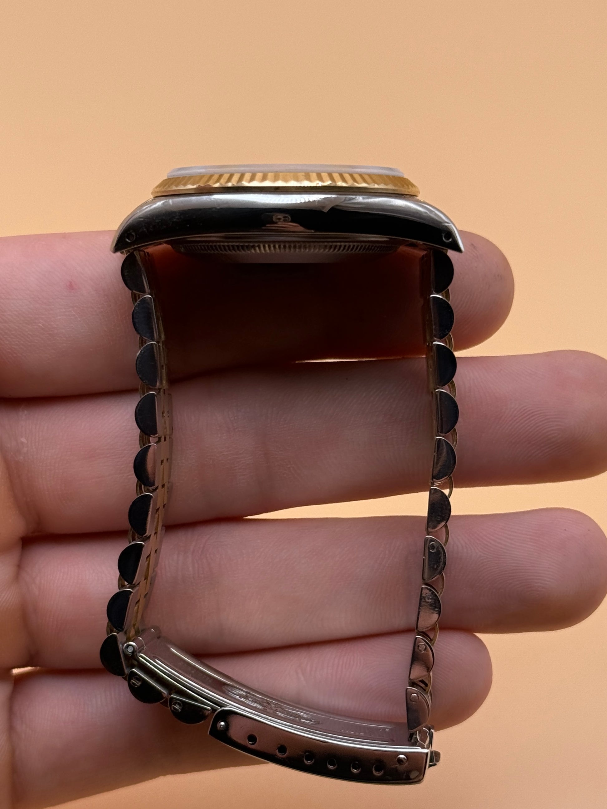 For sale is a two-tone sapphire D8 Just fitted with a lovely lapis dial. The dial and hands are A-M, giving it an awesome look for the money. Case is sharp, bracelet is super tight, and it’s keeping respectful time. Just a great daily piece with some personality.