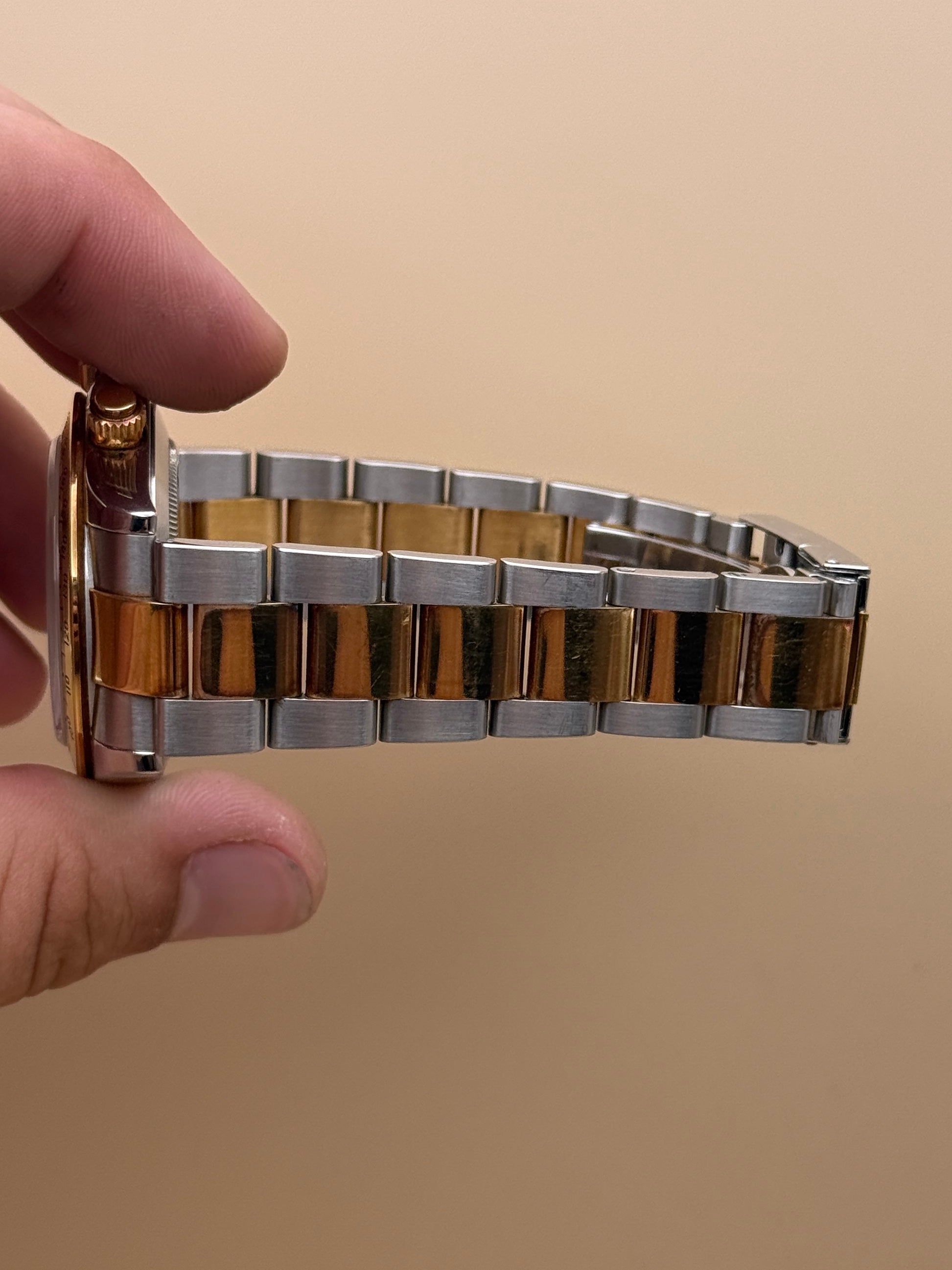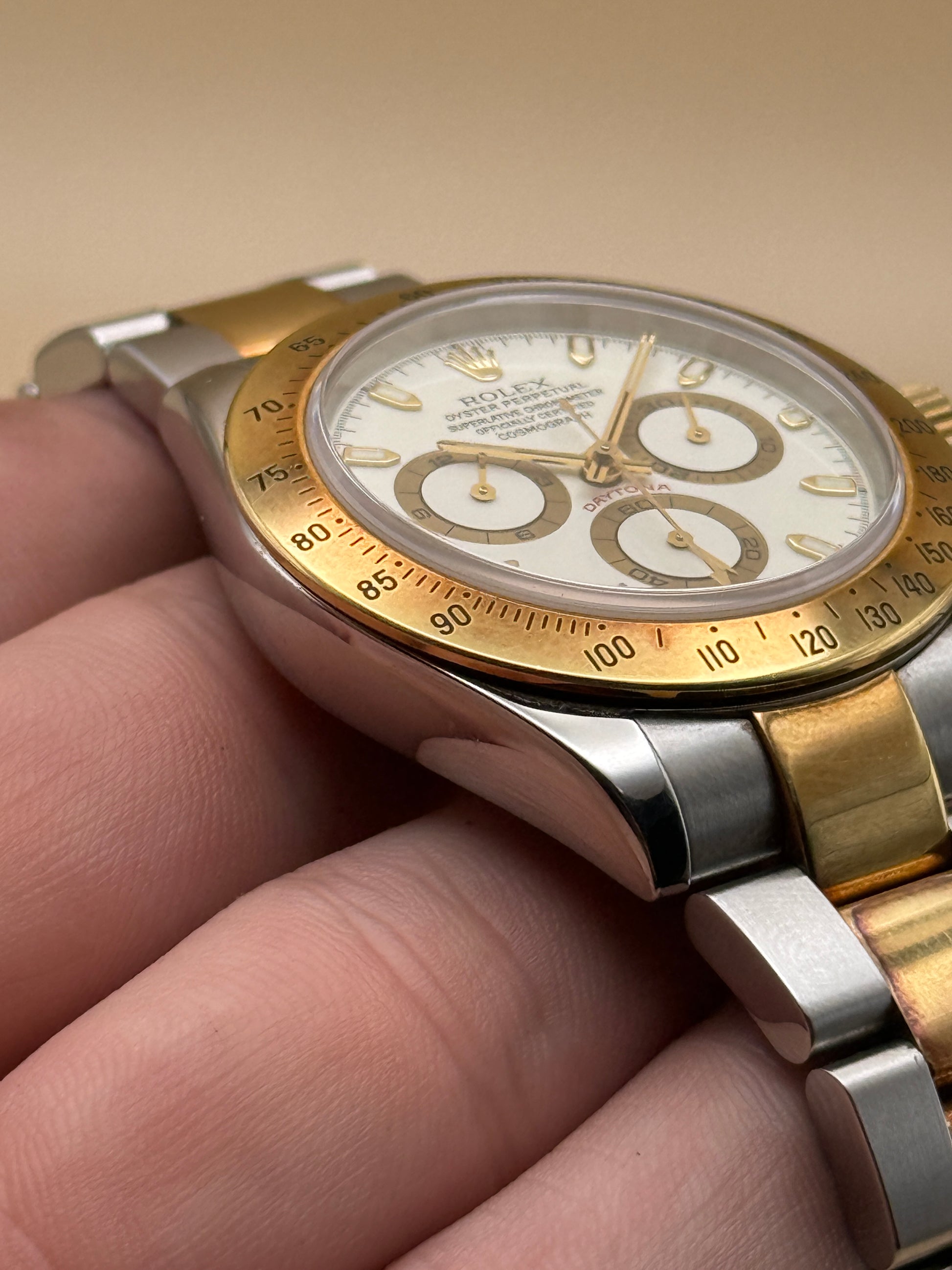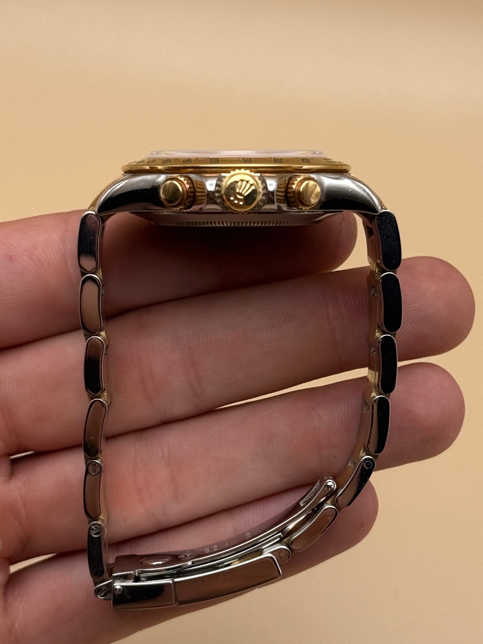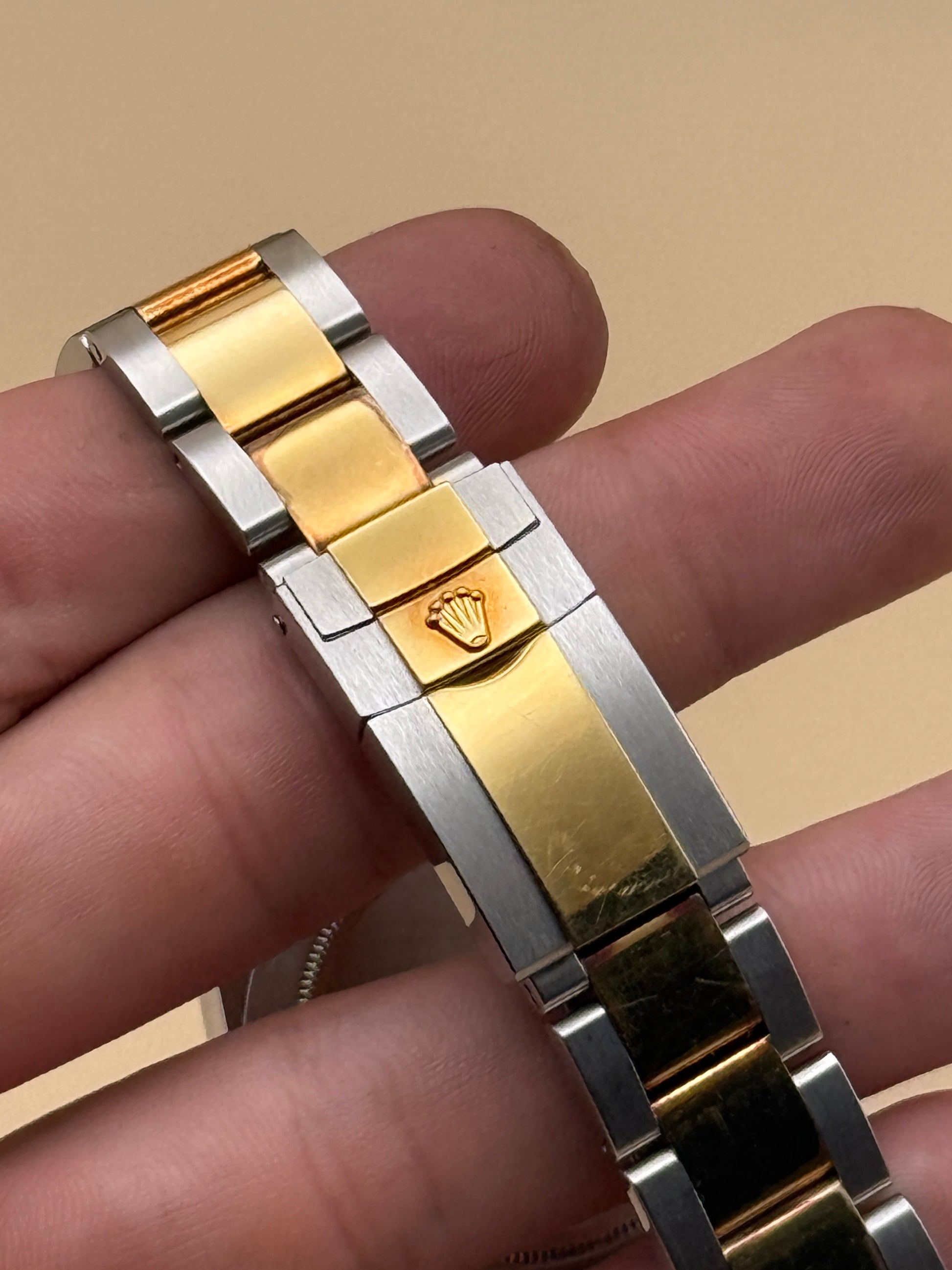 Patina lover’s special—an early generation 116523 in excellent condition, with a beautiful warm gold patina across the watch. Incredibly tight 12-link bracelet plus extension. A standout example that’s getting harder to find in this shape. Comes as watch and papers.