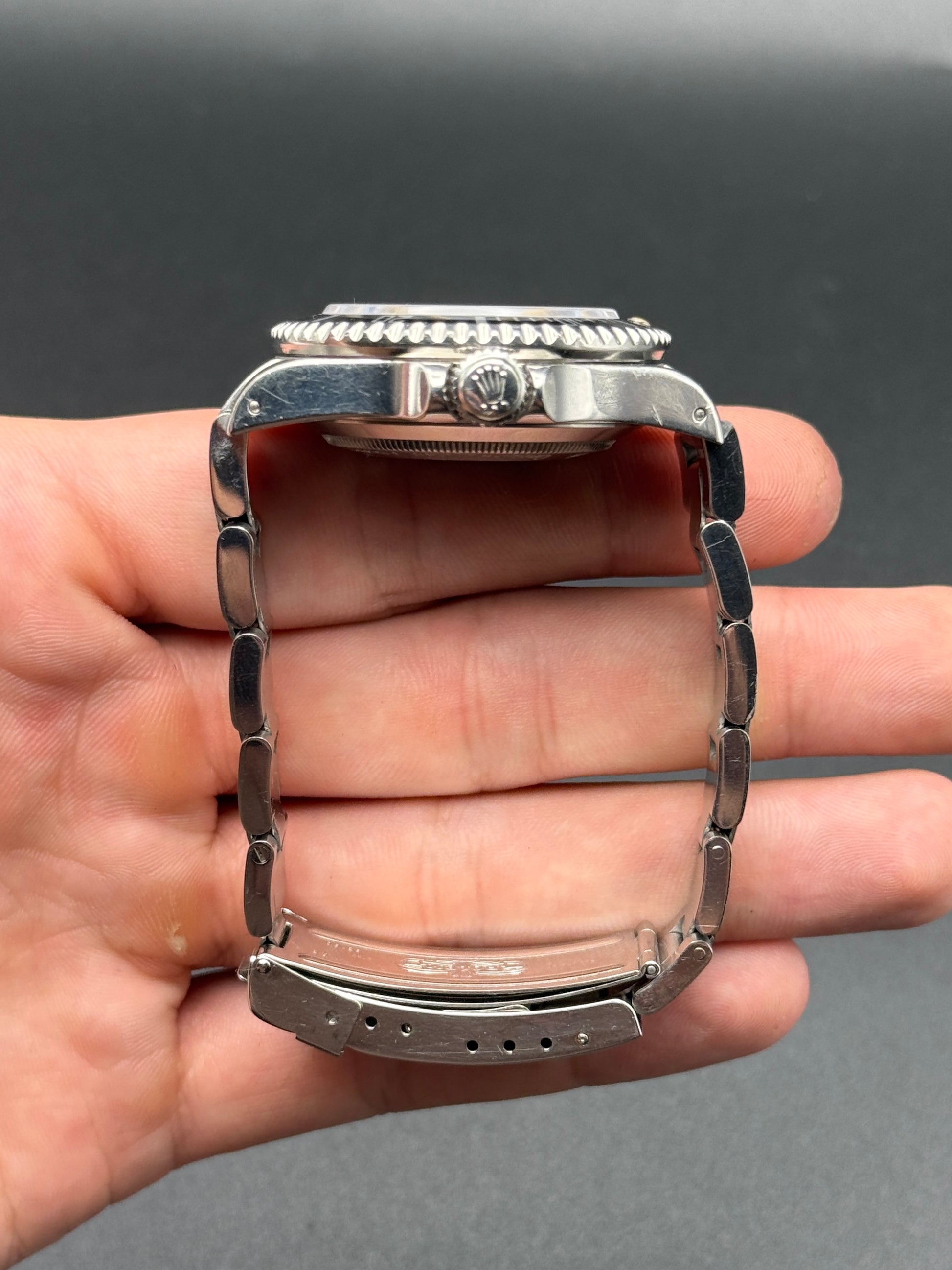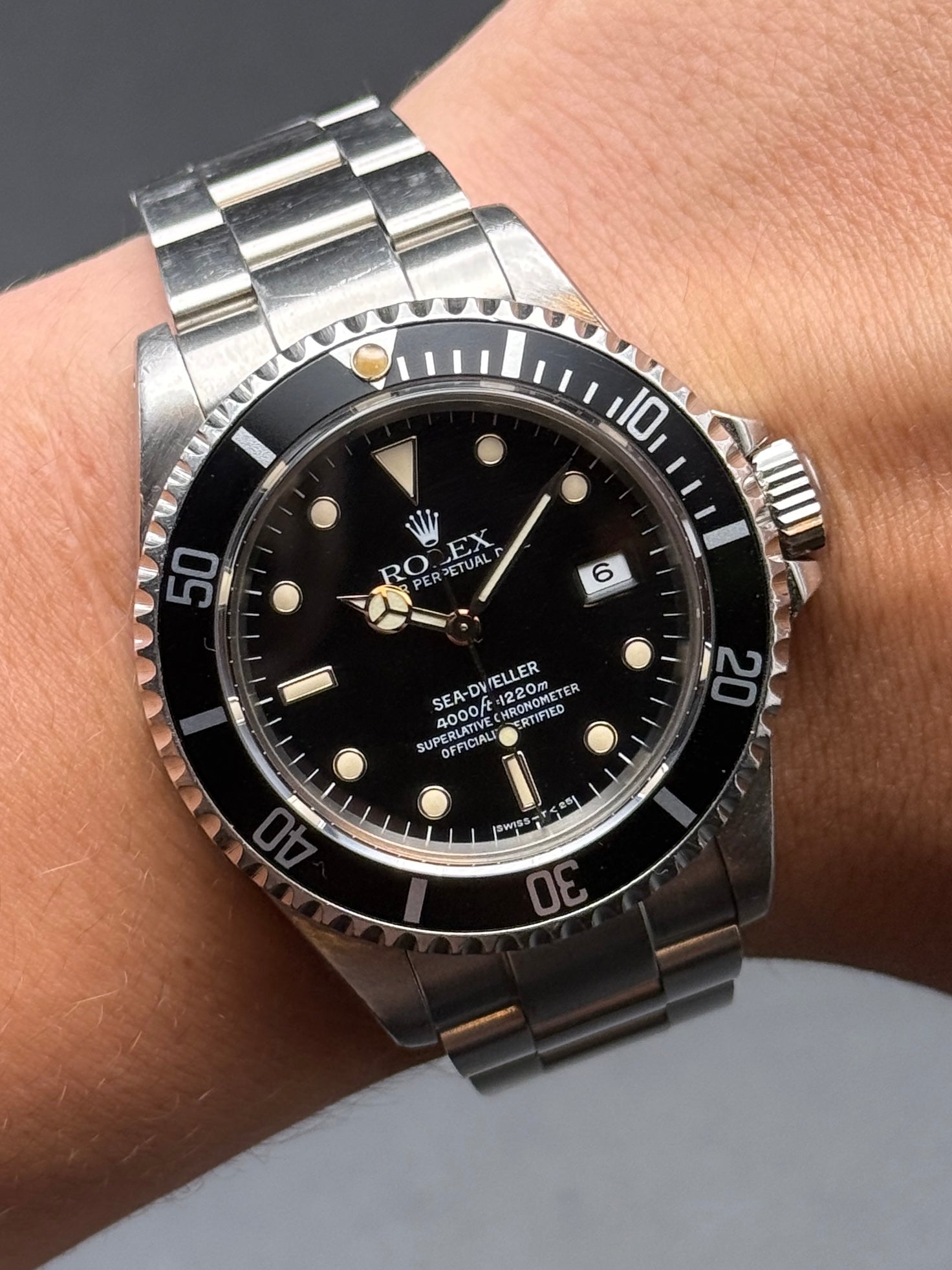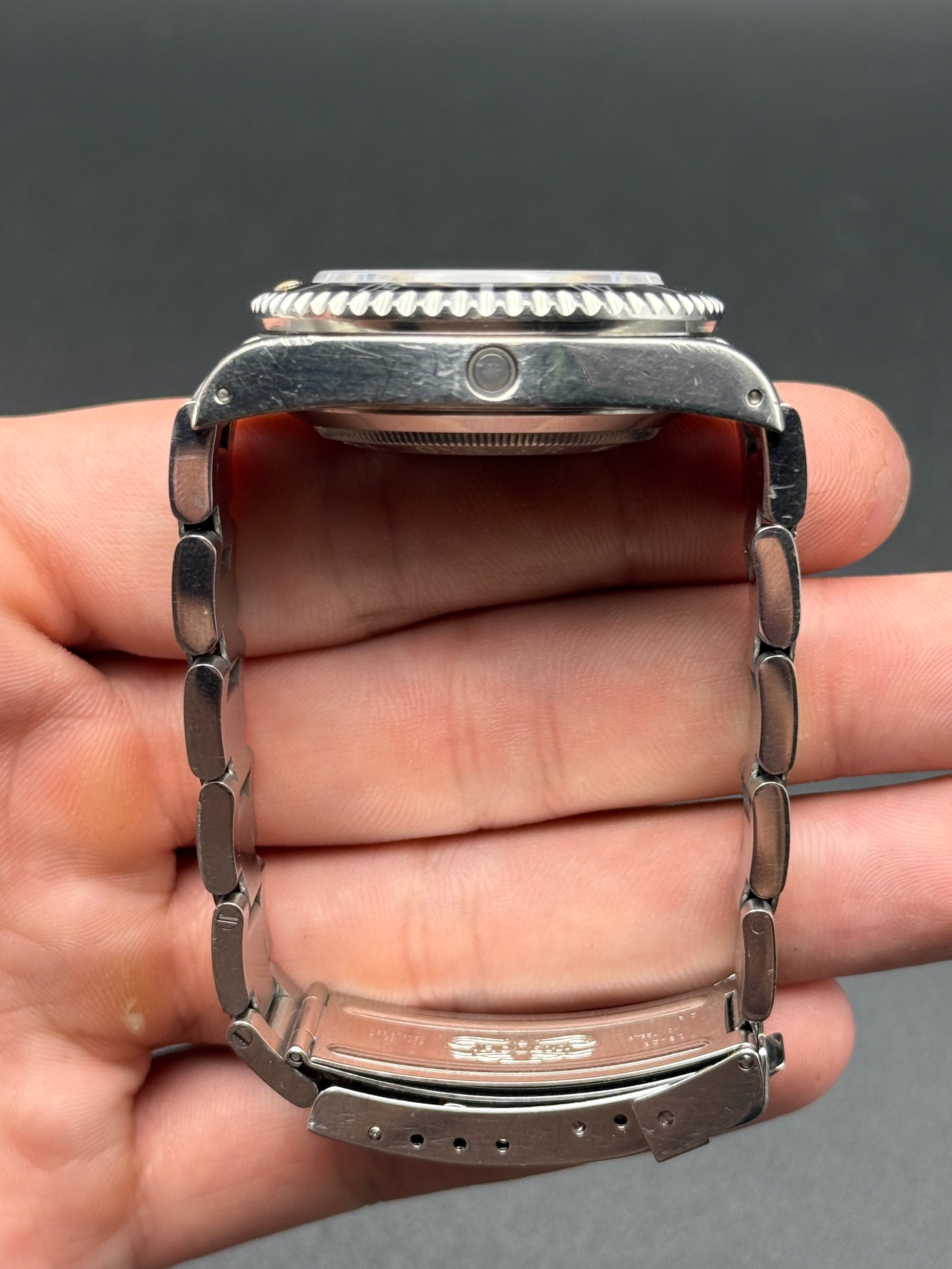 Lovely Sea-Dweller with a sharp case and a beautifully aged dial and handset showing warm patina. Honest and worn, with great character—patina takes on a darker hue in natural light. This one’s aging like fine wine. 592B/93160/R clasp code, all correct. Comes as watch only.