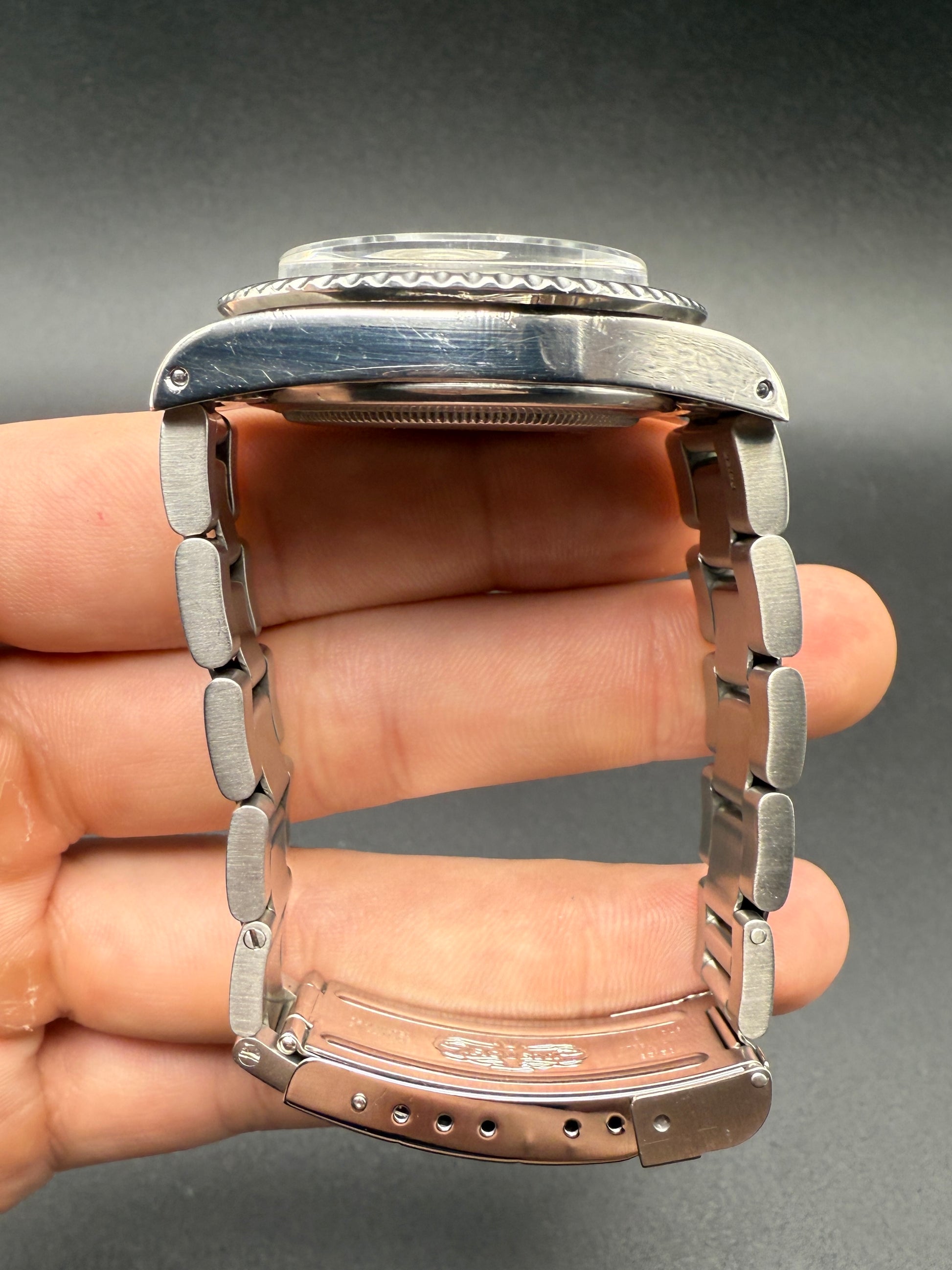 For sale is a killer 1680 Sub. This beautiful “Toothpaste” (tritium service dial) is comparable to an MK2 dial with open 6’s. Light marks throughout, running great with a recent service in April ’25, along with several service markings on the case back showing it has been well cared for. The dial and hands are exceptionally clean. Fitted with all tritium parts, a 93150 bracelet, 580 end links, and a CL clasp code.